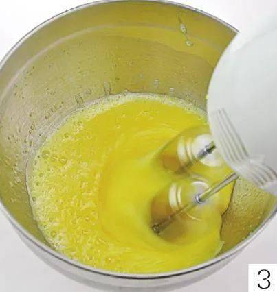 1这款蛋糕只加了少量泡打粉,主要还是靠全蛋打发来使面团膨胀,所以鸡蛋一定要打至膨胀至2 倍大、蛋液能拉出8 字的缎带时才可以。